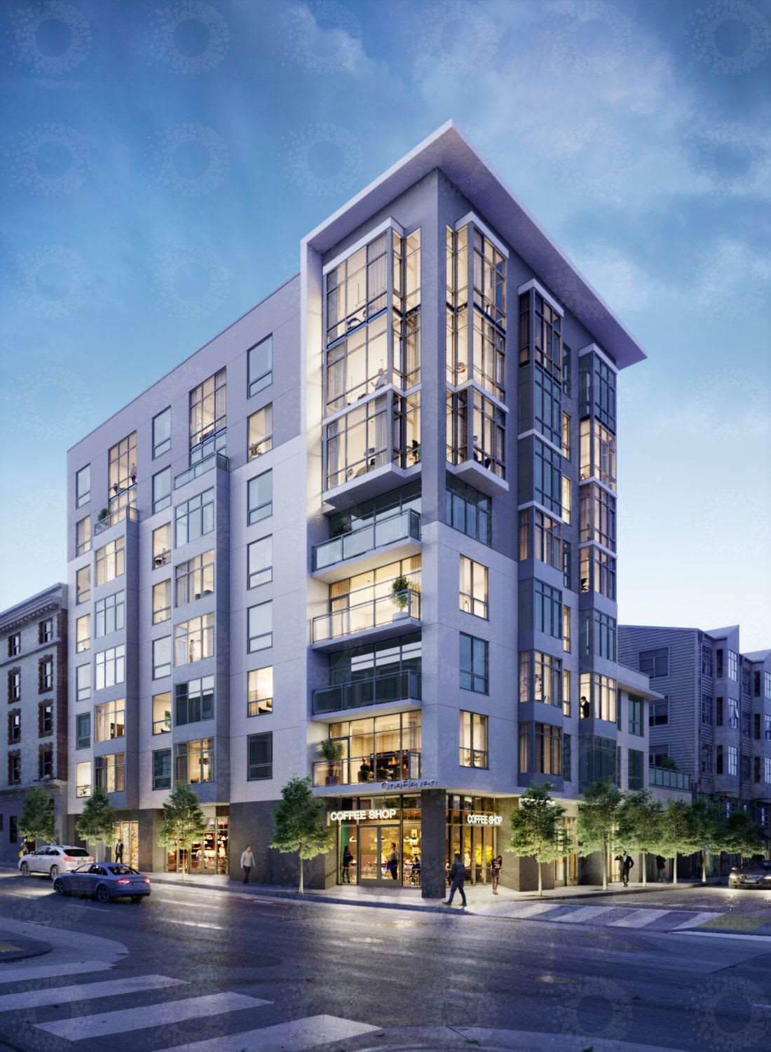 The sleek, modern eight-story building occupies a corner site in the SOMA neighborhood, which is home to the San Francisco Museum of Modern Art as well as the LGBTQ and Leather Cultural District, which commemorates the decades-long leather subculture popular in the area.